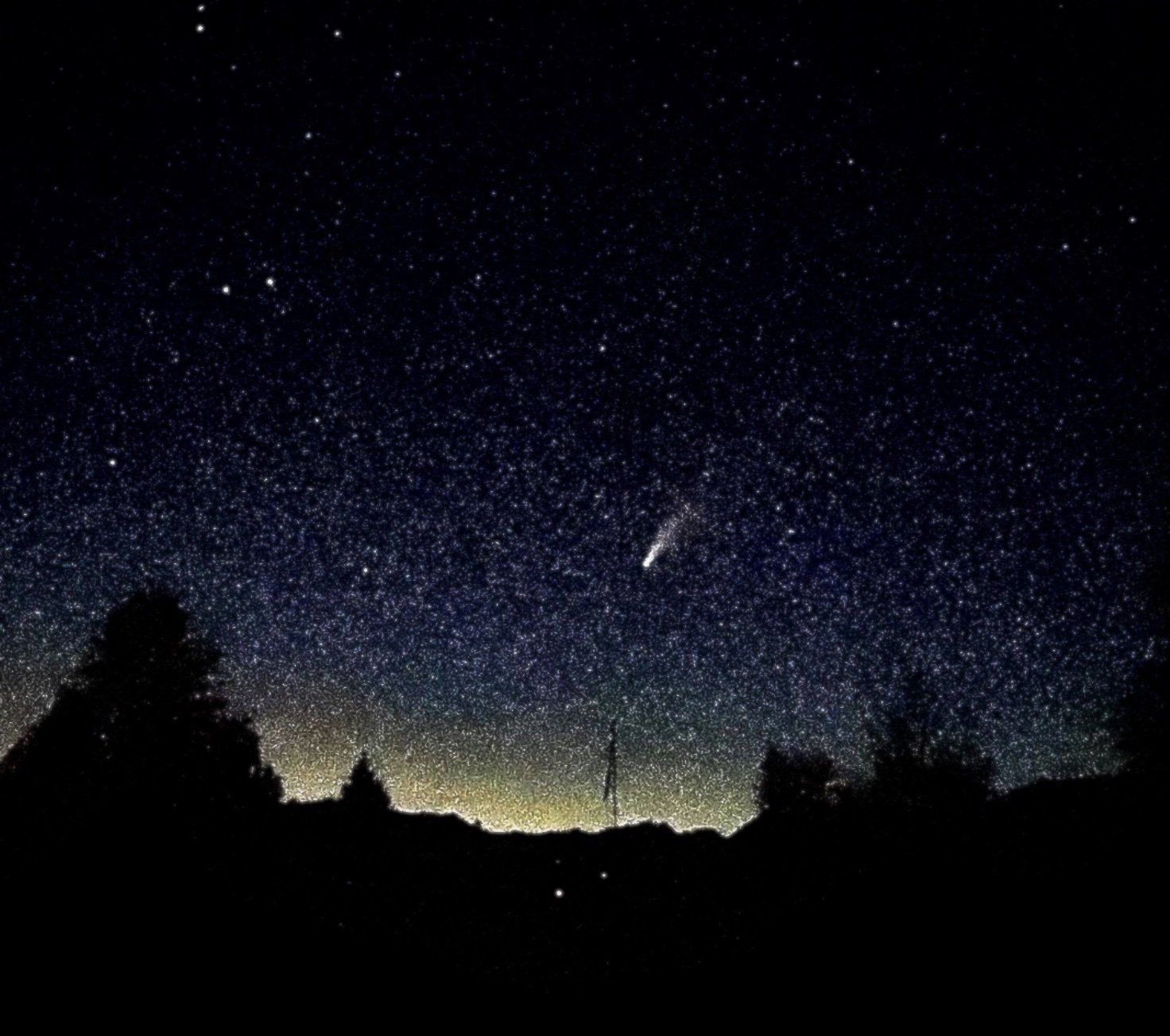 I, for one, won't forget it. It was mid-July, so, even at 3AM it was still hot out. I crept out of our home on East County Road, taking in a deep breath of clean country air beneath the usual blanket of infinite stars. I turned to the North and there, above the silhouettes of low-lying foothills, was the rocketing stillness of a comet, hanging in the sky, blazing bright with an embarrassingly long tail. I had never seen one before, but somehow knew exactly what it was.